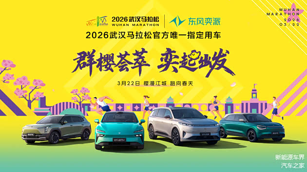 近日,东风奕派正式成为2026武汉马拉松官方赞助商,旗下全明星车型担任赛事官方唯一指定用车,品牌专属“奕家人”跑团深度参与赛事全程,同时官方官宣将于3月22日汉马开跑之际,推出一系列丰富多彩的品牌互动活动,诚挚邀请全球跑者共赴这场浪漫的樱花赛道之约。