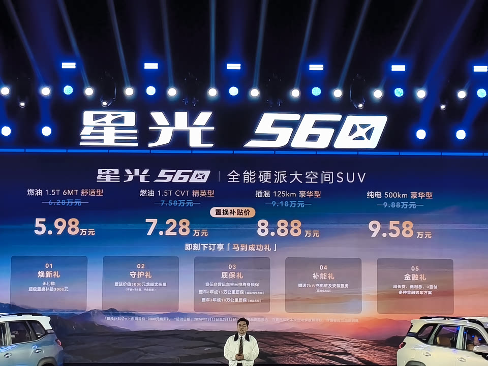 车盟快讯:1月15日,五菱星光560重磅上市,置换补贴5.98万-9.58万元。现在下订即可锁定多项专属权益!这款6万级大空间SUV堪称“全能选手”,以同级独有的“一车三动力”覆盖燃油、插混、纯电版本,精准适配多元出行场景。2810mm超长轴距造就83%高“得房率”,灵活储物空间兼顾家用通勤与户外露营。动力层面,插混版综合续航超1100km、纯电版续航500km且均支持2C快充,燃油版高效省油,补能无焦虑。全系标配双独立悬架+540°全景影像,高配搭载智能泊车、Ling OS 2.0系统,操控与智能双在线。开上这样一款空间大、动力全、配置优的实用座驾,日常出行怎能不大有奔头?