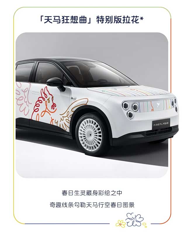 或许当下的你会质疑我起的标题,但别急,这贵出的1万块,是物超所值的。先是外观,作为“天马狂想曲”特别版车型,新车拥有一整套独特拉花设计,拥有大量不同色彩的笔触,在看似繁乱的笔触中勾勒出“飞马跃动”的画面,而活泼的色彩搭配让整个画面变得更加生动活泼,十分贴合“天马狂想曲”这一主题。