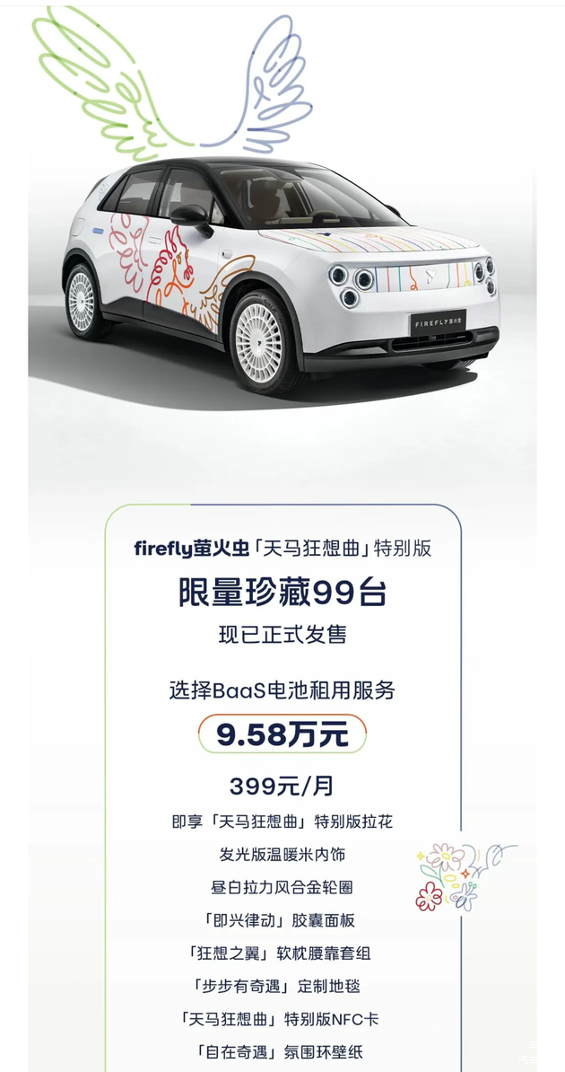 但近期推出的萤火虫“天马狂想曲”特别版,我想偏爱一些,暂时把firefly萤火虫放在心头好首位。先说价格,“天马狂想曲”特别版比顶配贵1万元,配置面与顶配看齐。是的,你没看错,配置看齐顶配,价格贵1万!