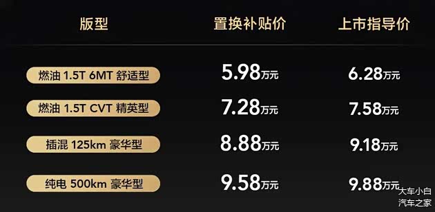 插电混动版搭载1.5L发动机与电机的组合,纯电续航125km。满油满电综合续航可达1100km,WLTC亏电油耗仅5.3L/100km。