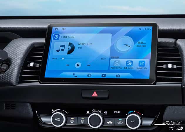 内饰仍是满满的机械风,配有双辐条多功能方向盘,升级了10.1英寸车载中控大屏,还支持CarPlay、CarLife以及HiCar有线和无线连接。