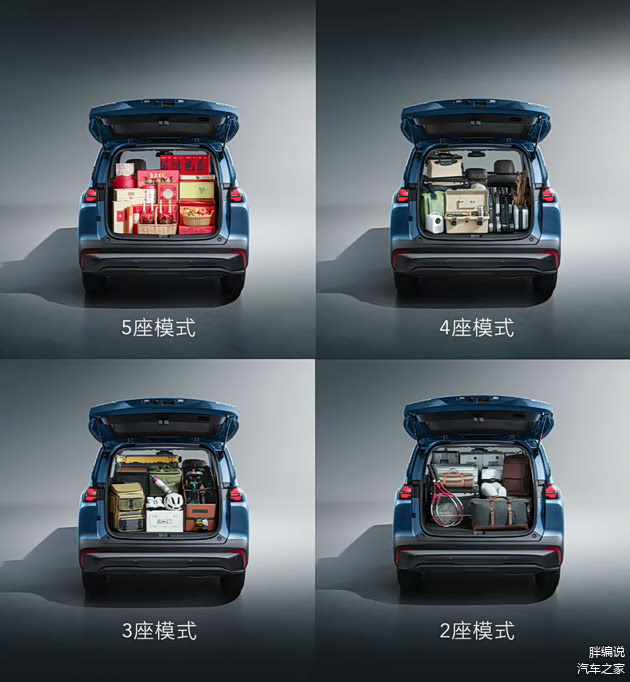 后备厢整体开口大,门槛也低,方便取放物品,常规容积为763L,隔板下方还有184L的储物空间,第二排放倒后最大可拓展至1945L,该车第二排还配备魔术座椅,第二排整体放倒后,坐垫可向前翻折形成全平空间,同时座椅按比例放倒让后排空间灵活变动,可实现2座到5座各种模式。