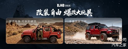 BJ40探险家是一个“爆改大玩具”,采用同级唯一快拆硬顶设计和开式车身,硬派越野可变身敞篷越野车;支持深度创意,是一个容纳千种玩法、万般想象的潮流生活伙伴。