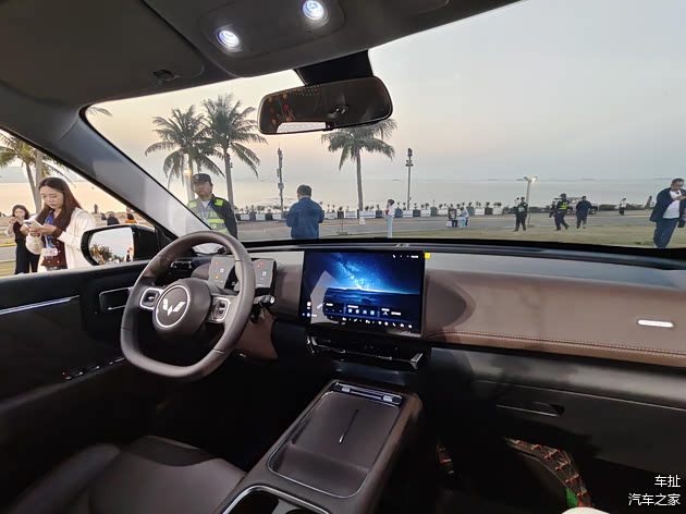 内饰采用环抱式设计风格,配备全液晶仪表、12.8英寸悬浮式中控,内置Ling OS系统,支持HiCar、CarLink、DLNA等手机互联,支持小憩模式、露营模式等多场景模式。