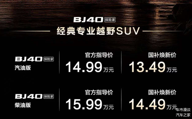 1月15日,北京越野全新车型 BJ40探险家正式上市,官方指导价区间为14.99-15.99万元,叠加国补焕政策后,起售价低至13.49万元。作为品牌战略转型深化落地的核心入门级力作,BJ40探险家的登场,既是北京越野“燃油+新能源”双线布局、“方盒子产品矩阵”扩容的关键落子,更印证了其从“专业越野工具”向“全场景越野生活载体”转型的显著成效。
