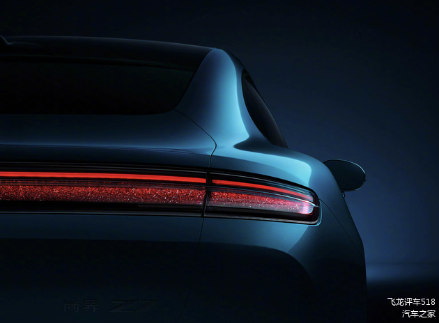 从图片来看,尚界Z7的整个车头也十分低趴,封闭式的格栅两侧配备了嵌入式的犀利前大灯,内部融入了星河璀璨的点阵式LED光源、矩阵式LED远近光光源,前保险杠采用了经典的三段式设计,两侧对称式的獠牙式导流槽和中间被横向拉伸的大嘴式进气口,再配上碳纤维纤薄前唇,也极具视觉冲击力。车尾预计也会加入贯穿式尾灯,熏黑灯罩内部同样融入了璀璨星空样式的碎钻光源,两侧边缘还加入扁平化的C字形红橙双色的光带,提高了夜间辨识度。黑色的底部扩散器造型简约,也更加符合时代审美。