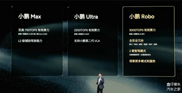 在辅助驾驶硬件层面,小鹏将提供Max、Ultra与Robo三个梯度。Robo版本配备4颗图灵AI芯片,算力达到3000TOPS,并在转向、制动、感知与通讯等关键系统中引入冗余设计。这一配置并非面向普通消费者,而是为Robotaxi运营与极端工况预留安全边界。对于普通用户而言,这意味着技术储备已经提前完成,未来相关能力有可能通过软件方式逐步释放。