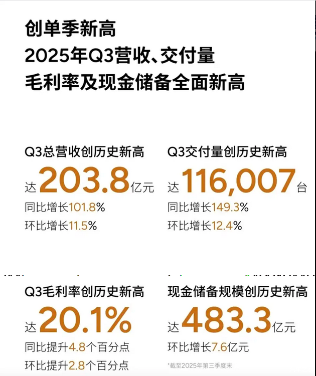 2025年第三季度,小鹏在多个关键指标上实现同步改善。单季度营收超过200亿元,交付量突破11.6万辆,毛利率站上20%,现金储备接近500亿元。这些数据对于消费者的直接意义,在于品牌是否具备持续投入产品迭代和售后体系的能力。从用车周期角度看,一家车企是否具备稳定现金流,直接影响后期OTA支持、零部件供应稳定性以及服务网络扩展速度。对于打算长期持有车辆的用户而言,这些“看不见”的指标,往往比单一配置更重要。