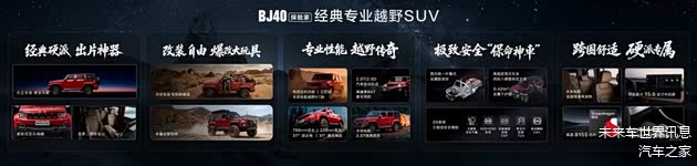 北京越野董事长王昊表示,BJ40作为中国越野的领路者,亲历过无数盛事荣耀,也成为中国汽车的独特文化符号,在全球用户的认可中走入了万千家庭。BJ40以探险家的名义,开启全新征程,在经典设计、自由改装、专业性能、极致安全和跨圈舒适五大维度再造新经典,为中国越野车市场再造经典专业越野SUV。