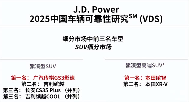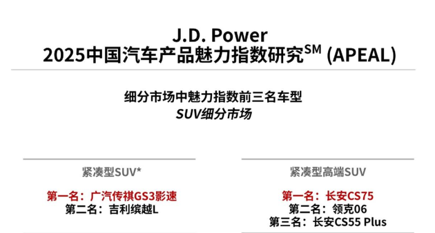 销量是产品实力的直接体现,而品质则是最好的“护城河”。据中国汽车质量网统计,影速自2023年至今一直稳居自主品牌小型SUV质量冠军,在《J.D.Power2025中国车辆可靠性研究(VDS)》 中,影速荣获紧凑型SUV可靠性第一名;在《J.D.Power2025中国汽车产品魅力指数研究(APEAL)》 中,影速同样位列紧凑型SUV榜首,这意味着用户在实际用车中,对其设计、性能、智能化及驾驶感受给予了极高的评价。