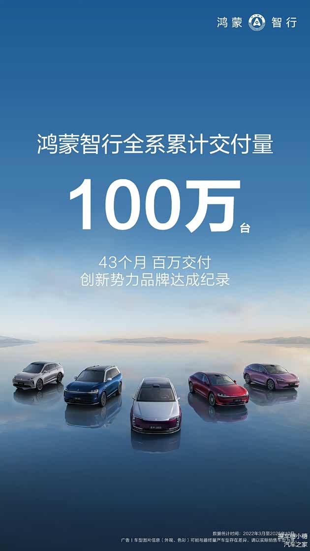 关于“第二个百万台需要多少时间”的问题,按当前鸿蒙智行月均2.3万多台和已突破81864辆的月交付峰值来计算,第二个百万台预计十几个月能完成。这也意味着鸿蒙智行有望在27年初实现累计交付200万辆的目标。