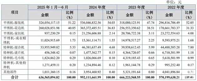 目前,信胜科技的收入主要来自平绣机中的服装机和花边机这两大产品,二者合计贡献的收入约占公司主营业务收入的90%左右。