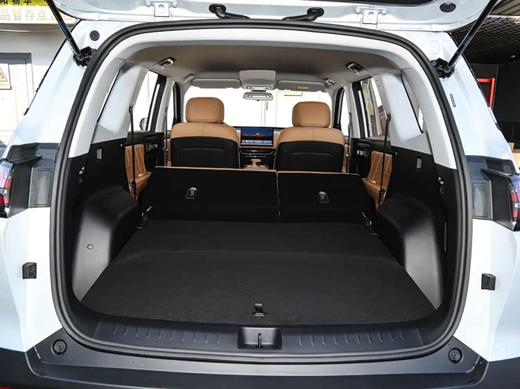 座椅布局方面,新车提供大五座或七座两种座椅布局,前排座椅靠背支持放平,和二排能够形成一个可供临时休息的平整空间,第二排座椅也可支持靠背调节和4/6比例分割放倒,且靠背角度最大支持128°。新车储物空间也比较丰富,后备厢常规容积763升,还有184升隐藏式下沉空间,后排座椅放倒后,最大可扩展至1945升,而且后排座椅下方额外设有32升隐藏式储物格。