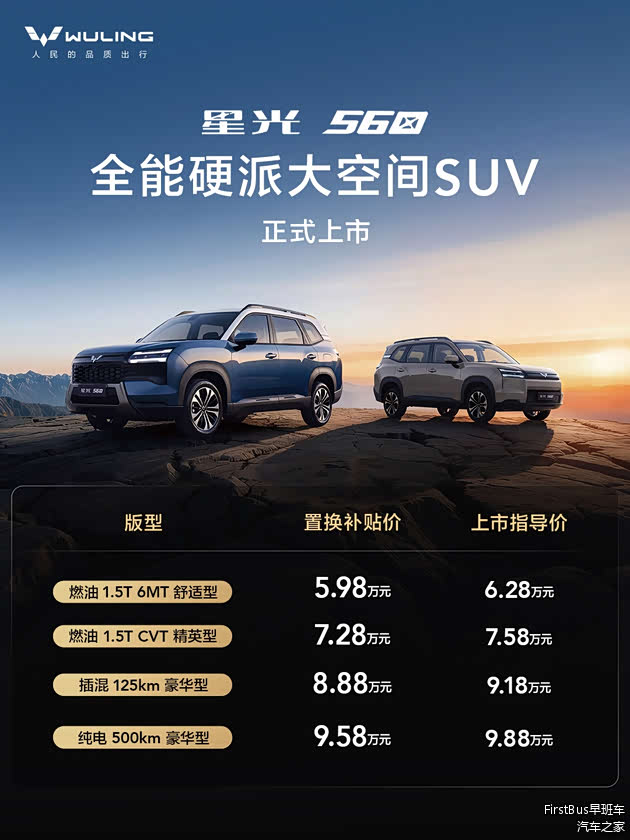 【新车上市】近日,五菱 星光560正式上市,共推出4款车型,售价区间6.28-9.88万元,置换补贴价为5.98-9.58万。新车基于天舆架构D平台打造,定位为全能硬派大空间SUV,拥有燃油、插电和纯电三种动力可选。