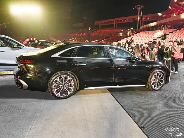 再来看车身侧面部分,车身侧面线条流畅修长,采用溜背式车顶弧线,风阻系数优化至0.23Cd,创下奥迪量产内燃机车型史上最佳纪录。 半隐藏式电动门把手取代传统设计,使侧面更简洁现代。车窗周围镀铬装饰条和车门下方内凹腰线,延续了行政级轿车的优雅气质。车身尺寸全面升级。