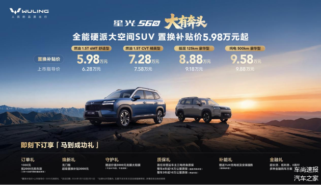 当汽车消费回归实用本质,一台能覆盖家用、通勤、远行等全场景,且兼具颜值、空间与性价比的车型,总能精准击中用户需求。2026 年 1 月 15 日,五菱汽车重磅推出首款硬派风格 SUV—— 星光 560,以 5.98 万元起的置换补贴价,带来燃油、插混、纯电三种动力选择,用越级实力为消费者的品质出行注入新可能,更让 "大有奔头" 的生活愿景有了坚实载体。
