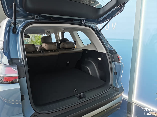内饰方面,新车采用纯平地板设计,提供胡桃棕或暖沙棕两种配色方案。车内配备平底双辐式方向盘、3.5英寸TFT+断码组合仪表,全车五座座椅骨架均采用高强度钢结构。前排座椅可180°放倒,后排座椅坐垫下方设有32L隐藏式储物槽,靠背最大可调至125°,并支持4/6比例放倒。后备箱为双层设计,包括763L常规容积和184L隐藏式下沉空间,整体容积达947L。后排座椅放倒后可与后备箱形成纯平空间,最大容积达1945L。