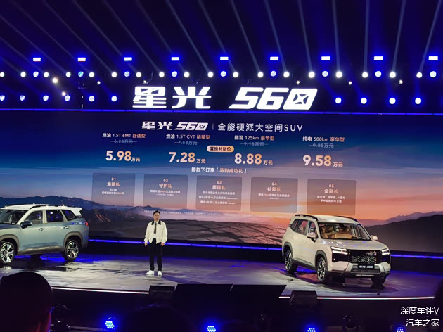 星光560的核心竞品集中于6-10万级主流家用SUV市场。分动力类型来看,燃油车型竞争对手主要包括长安X5 PLUS(指导价6.99万元起)、奇瑞瑞虎7(指导价7.49万元起)、哈弗H6(指导价9.89万元起)等;插混车型竞品包括长安启源Q05(指导价7.99万元起)、吉利银河星舰7 EM-i(指导价9.78万元起)、比亚迪宋Pro DM-i(指导价10.28万元起);纯电车型竞品则以比亚迪元PLUS(指导价11.58万元起)、吉利银河E5(指导价10.78万元起)、广汽埃安AION Y(指导价9.98万元起)、零跑B10(指导价9.98万元起)为主。