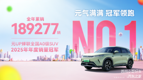 近日,乘联会2025年度乘用车销量数据公布,准A级潮趣纯电SUV元UP凭借硬核产品力与精准市场定位,以189277辆的销量成绩蝉联A0级SUV年度销量冠军,成为当之无愧的小型SUV市场王者。这一亮眼数据充分彰显了其在市场上的强大竞争力和广泛认可度。骄人成绩的背后,是元UP全方位越级实力的支撑,从外观设计到性能配置,每一处都可圈可点。