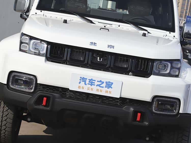 BJ40在造型上和基本和初代车型保持一致,家族化的五孔格栅一看就是最纯正的北京越野血统,新车只是在一些细节上进行了黑化处理,比如格栅、保险杠等等,再加上原本面积就不小的防刮包围,整体的战斗感还是很强的。