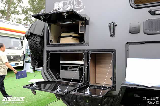 车辆右侧上方的储物舱可轻松容纳登山包、帐篷等出行装备,下方独立燃气舱则实现了能源与生活区的物理隔离,既安全又便捷。
