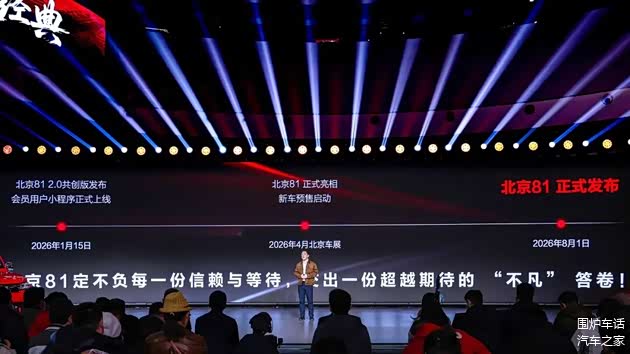 发布会现场,北京越野董事长王昊出席并致辞。大屏上,从1.0到2.0共创版的进化历程徐徐展开,每一帧都记录着用户声音与品牌匠心的交融。当画面定格,王昊总亲自宣布北京81 2.0共创版正式亮相的这一刻,既是对1.0共创成果的郑重传承,更是2.0全新征程的荣耀启航,深刻诠释了传承与创新的双重意义,并正式宣布下阶段上市计划。这场深度锚定硬核基因的仪式设计,不仅引发强烈情感共鸣,更让在场嘉宾感受到品牌与用户共创未来的坚定决心。