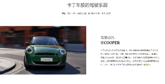 但MINI电动也有明显短板:智能化配置比较基础,没有高阶辅助驾驶,车机系统更偏向传统,和当下主流新能源车型比有差距;内饰空间紧凑,后排适合短途应急,长时间坐人会觉得压抑。另外,它只能依赖充电补能,没有换电选项,如果没有私人充电桩,长期使用会有些不便。