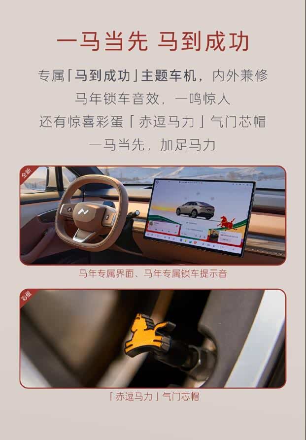 乐道L60马到成功版上线,整车买21.89万,搭配BaaS的话车子的部分是16.19万。作为马年新年的命题作文,新车的头枕、门槛饰条、气门芯盖和车机系统主题都强调了这个主题;另外标配的曙光金外观配色也挺喜庆😁 #乐道L60# #新能源汽车#