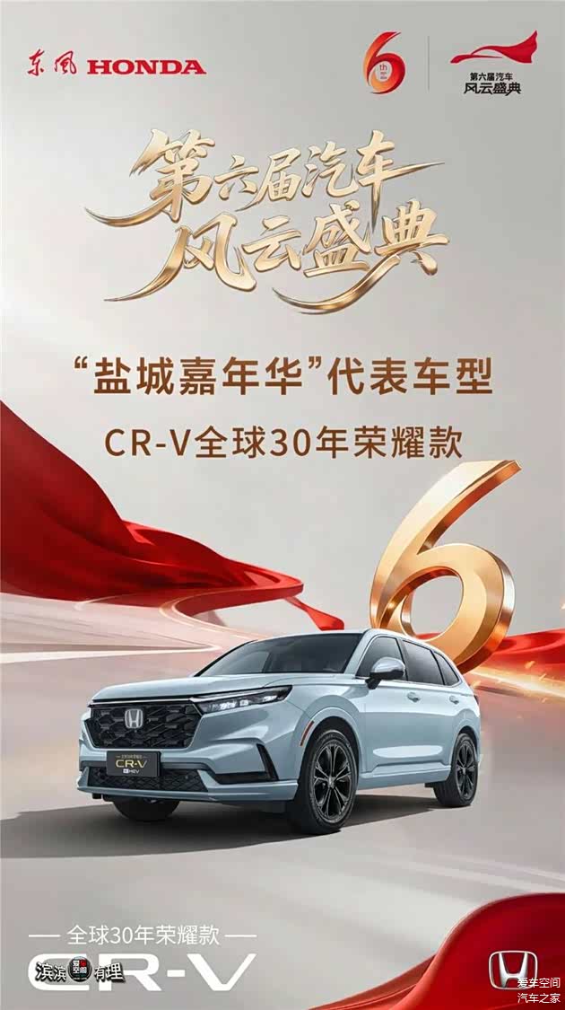 岁末年终,当各行各业进入盘点时刻,中国汽车界也迎来了权威“大考”。近日,由中央广播电视总台主办、总台财经节目中心特别策划的第六届《汽车风云盛典》盐城系列活动在江苏盐城拉开帷幕。活动聚焦”全维安全”主题,系统盘点了2025年度中国汽车产业的代表车型与创新案例。东风本田CR-V全球30年荣耀款,凭借在安全配置、智能科技、动力系统等方面的全面进化,从一众车型中脱颖而出,当选该盛典活动代表车型。