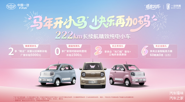 除了产品焕新,一汽奔腾更以央企担当送上马年厚礼。为庆祝20万辆整车下线及2025年奔腾品牌销超20万辆的成绩,推出马年开小马快乐再加码新年欢乐购活动,四重真保障直击用户购车痛点。焕新双补礼提供政企双重以旧换新补贴,厂家额外补贴5000元;超级免税礼送上1500元限时购置税补贴,降低购车成本;央企质保礼堪称行业标杆——央企无门槛整车+三电终身真质保,不限里程、前3年不限过户、前3年不限回店保养,搭配终身道路救援、终身保养计划,让用车全程无忧;央企金融礼推出2万元60期真0息贷款政策,大幅减轻资金压力。