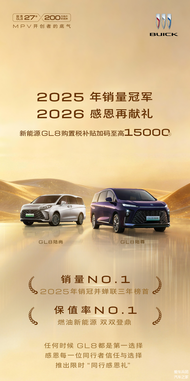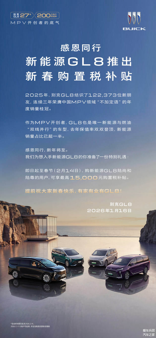 就拿刚过去的2025年来说吧,别克GL8卖出了122373辆,稳坐钓鱼台。现在为了让利给消费者,让大家享受更多的购车福利,别克厂家拿出真金白银给消费者补贴,这真的是豁出去了。