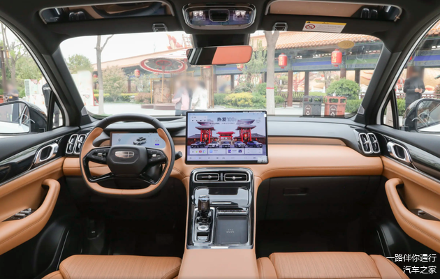 坐进车内,吉利博越L的内饰布局确实有很大的改变,与上一代车型相比,2025款吉利博越L的中控布局确实更为简约时尚,而且横向布置的中控屏幕也更符合市场的节奏和广大用户的审美需求。