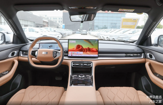 坐进车内,吉利银河A7的入门版车型标配14.6英寸中控屏,其余车型的中控屏则是升级为15.6英寸2.5K分辨率的规格。当然,就算是入门版,银河A7也提供了人机交互体验更好的Flyme Auto系统,同时车机内部的导航软件也是大多数用户习惯使用的高德地图。而在其它配置部分,银河A7全系标配L2级辅助驾驶系统、六处安全气囊、540°全景影像、皮革包裹的多功能方向盘+电子怀挡,以及10.2英寸全液晶仪表和仿皮座椅,从这些配置上来看,其实已经能够证明银河A7就是一台入门即高配的产品。当然除了这些之外,2845mm的车身轴距,也确实为其带来足够宽敞的后排空间。