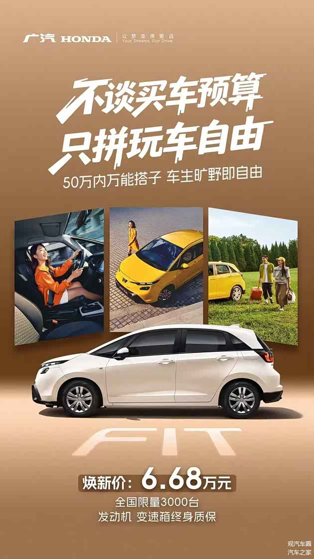 随着新飞度的发布,无数曾经年轻过的老中登玩家大呼“爷青回”!6.68万的焕新价更是戳中无数玩车人的DNA!此外,新飞度宣布此次焕新版全国限量3000台、为发动机和变速箱提供终身质保,并且携手治愈系顶流IP“胖滚家族”推出联名车贴,这波诚意不仅唤醒了老粉的情怀,更把年轻玩家狠狠圈粉!