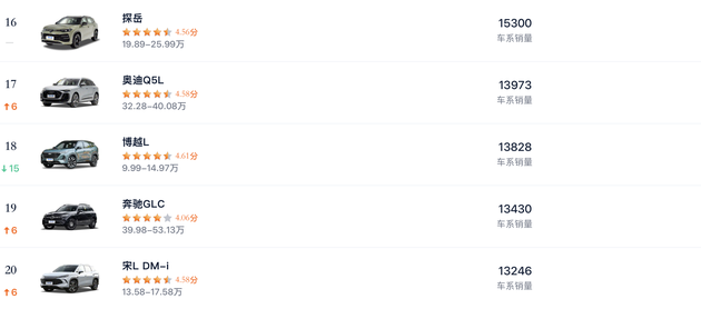 附:2025.12月SUV销量榜前20名