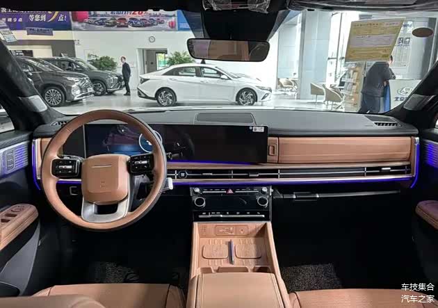 进入车内,2026款胜达的内饰布局同样未见大幅调整,除了入门探索家Air版本之外,其余车型均搭载了双12.3英寸全景曲面屏,构成了座舱的视觉中心。换挡机构采用旋转式电子怀挡,此举为中控台下方腾出了可观的储物空间。车机系统支持蓝牙、无线CarPlay/CarLife、车联网及OTA升级,满足了基础互联需求。不过车内仅主副驾区域支持连续语音和可见即可说控制功能,相比当下的主流新势力车型还有一些差距。
