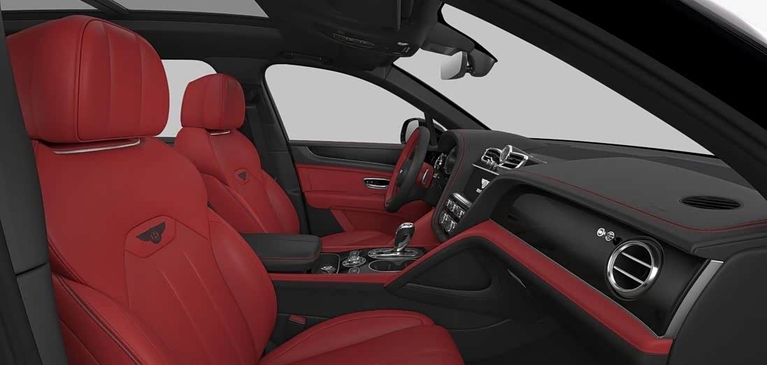 颜色:宝石黑/热刺红/鲸鱼黑/黑钢琴木 颜色配置 宾利徽章座椅刺绣 3辐式双色加热真皮镶边方向盘 后门电动关闭系统 黑钢琴木 4+1座椅配置