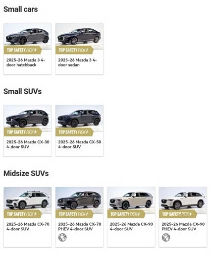 近日,全球汽车安全领域的权威标杆——北美公路安全保险协会IIHS公布2025-2026年度安全测试结果。马自达凭借硬核安全实力再创佳绩,旗下8款主力车型全线斩获“TOP SAFETY PICK+(TSP+)”顶级安全评级,连续三次成为该级别获奖车型最多的汽车品牌,以全阵容满分表现领跑全球汽车安全领域。