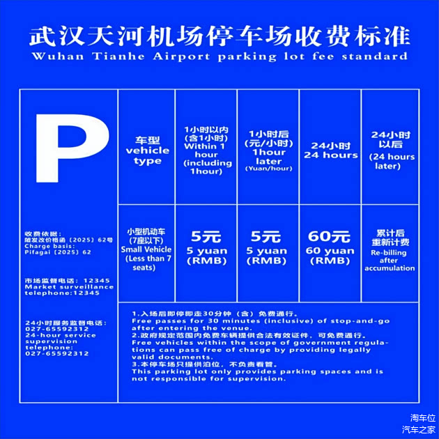 - 24 小时内累计收费最高 60 元,超额部分不计费