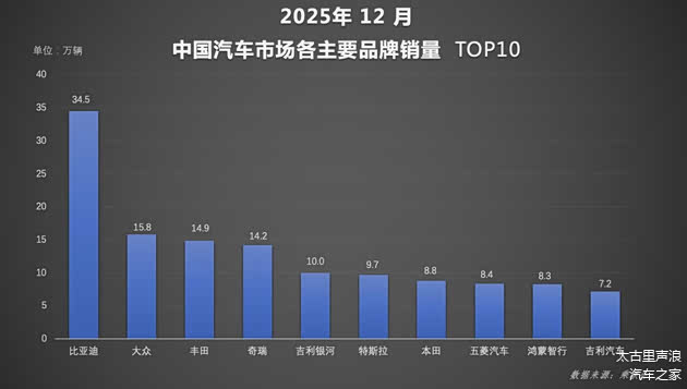 2025年落下帷幕,中国汽车市场年度销量数据正式发布。行业统计显示,比亚迪在12月及全年维度,包揽中国汽车市场品牌销量、新能源汽车销量、集团整体销量等多项第一,同时连续四年蝉联全球新能源汽车市场销量冠军及中国汽车市场品牌销量冠军。