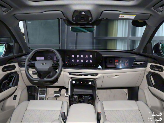 内饰方面,全新奥迪Q5L采用了与奥迪A5L相同的内饰设计。由11.9英寸仪表屏与14.5英寸中控屏组成的双联屏,搭配副驾独立的10.9英寸副驾屏,同时还配备了13.1英寸W - HUD。整体内饰风格与外观一样,线条凌厉,看上去更显年轻且富有科技感。车机语音助手支持连续多指令操作以及可见即可说功能,还内置了高德定制全场景领航系统。