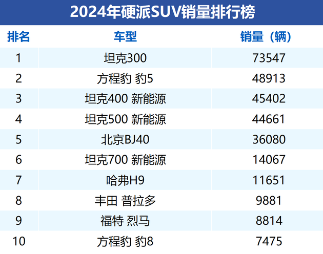回顾2024年硬派SUV销量榜,硬派SUV的洗牌效应也是十分明显的,多款被看好的热门硬派SUV,已遗憾跌出榜单前十。以福特烈马为例,新车从曝光到上市前,都有着很高的关注度,但因定价高的问题,导致销量不温不火。2026年,随着更多新车的加入,不知道又会是怎样的景象!