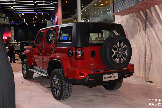 在车身尾部,BJ40探险家除了保留经典的隧道式尾灯与外挂备胎外,还把后保险杠进行了磨砂黑化处理,与车辆前脸造型形成呼应,展现出了颇具张力的越野运动风格。