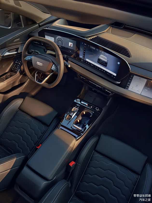 全新奥迪Q5L的内饰应用奥迪最新座舱布局,11.9英寸液晶仪表屏、14.5英寸中控MMI触摸显示屏以及10.9英寸副驾娱乐屏,并配备上下平底式方向盘。同时,换挡机构改为电子滑块样式。全新奥迪Q5L还搭载L2级别智能驾驶辅助系统,能够实现窄路循迹倒车,也能够实现高速、高架以及城区道路的巡航辅助系统,不过华为乾崑辅助驾驶系统以选装形式供应,配搭包含双激光雷达在内的33个感知硬件,可实现高速/快速路/城区道路巡航辅助等功能。