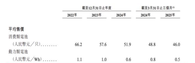 随着智能手机、笔记本电脑等消费电子产品普及率趋于饱和,市场从增量搏杀转向存量争夺。更致命的是价格战的到来——消费类电池平均售价从2022年的66.2元/只,一路下滑至2025年前三月的46元/只,利润空间被持续压缩。