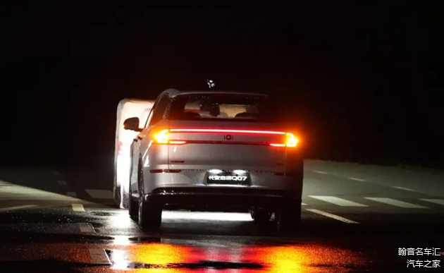 在夜间逆光场景中,长安启源Q07在各速度下均成功规避障碍,根据不同速度合理触发AEB或AES功能;夜间雨天工况下,尽管路面附着力下降,但车辆仍实现了本次测试的全速度层级的安全刹停。强光干扰和雨天湿滑路面均会影响车辆感知精度与制动效果,而测试结果表明,其主动安全系统能够适应这些极端气候条件,为全天候行车提供稳定安全保障。