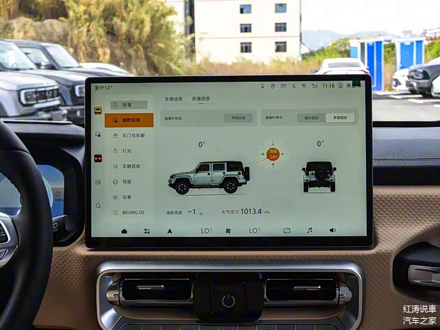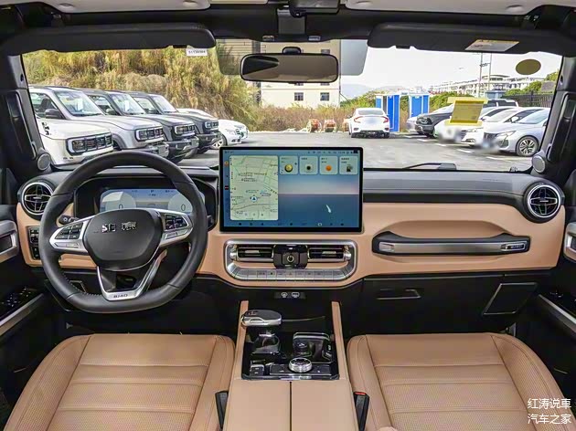 北京越野BJ40探险家采用了全新一代北京越野BJ40的那套内饰设计,配备12.3英寸液晶仪表和15.6英寸中控屏,车机内置高通骁龙8155芯片,支持华为应用生态,拥有倒车雷达、倒车影像、自动驻车、上坡辅助、陡坡缓降、定速巡航等功能。