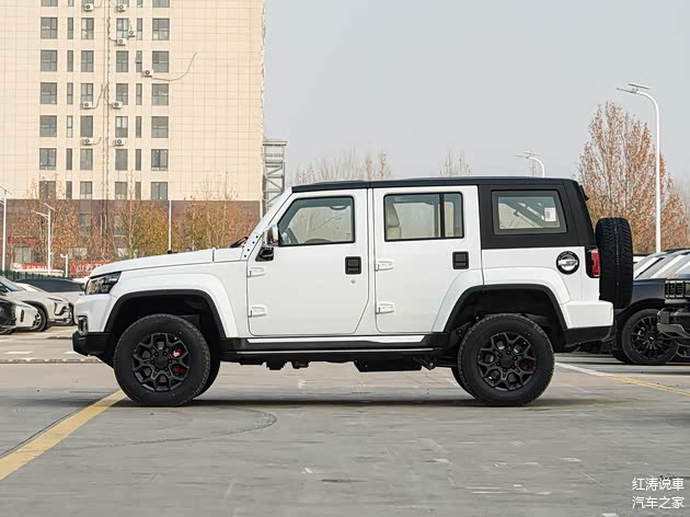 北京越野BJ40探险家的车身顶篷依旧为可拆卸式设计,提供外露式金属防滚架和RMI防侧翻控制系统,还有外扩式方形轮拱、外挂式备胎、侧开式尾门等设计,彰显着阳刚与野性,整车长宽高分别为4630/1925/1871毫米,轴距为2745毫米,新车接近角37度、离去角31度,纵向通过角23度,全系标配后桥差速锁及2.5吨牵引资质。