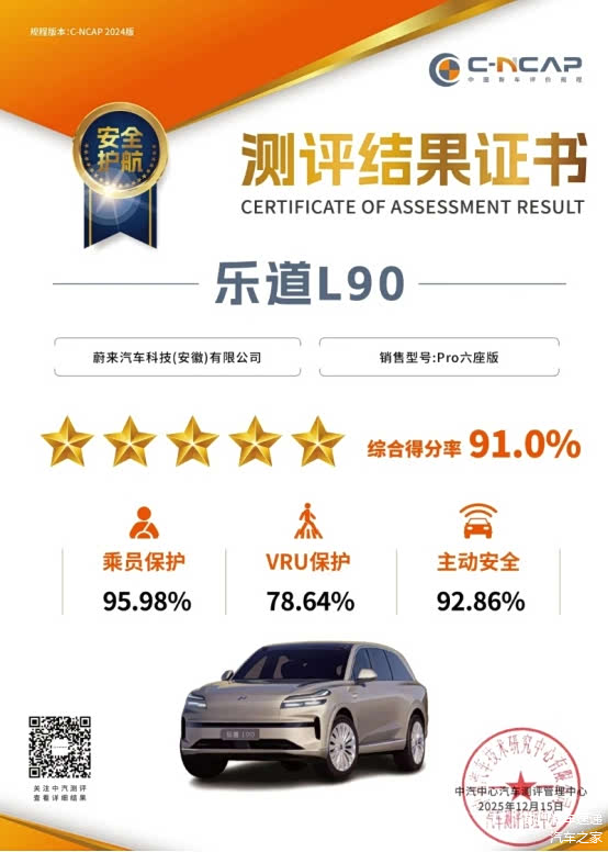 安全方面更是“全家安心堡垒”,乐道L90是大三排SUV中唯一拿下中汽中心C-NCAP和C-GCAP“双五星”认证的车型,还是行业唯一获得C-GCAP绿色能效五星认证的大三排SUV。超长侧气帘比行业平均水平宽10公分,刚好能守护中国儿童的颈部安全,带娃出行多了层保障。母婴级健康座舱+超越同级的轻量化水平,还让它在健康和能效上拿到“五星+”成绩,久坐不闷,能耗还低,家庭用户真的很难拒绝。